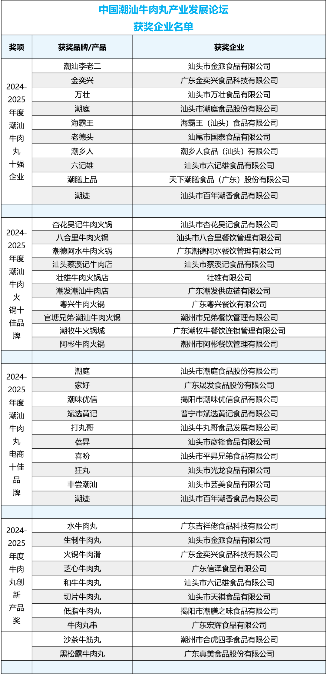 2025年8月18日,备受行业关注的中国潮汕牛肉丸产业发展论坛暨首届潮汕牛肉丸及牛肉火锅十佳评选颁奖典礼在广东揭阳隆重举行。